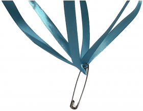 - Befestige die Streifen am Fallschirm mit Klebestreifen. Klebe dazu jeweils das Ende eines Papierstreifen auf die schwarzen Punkte.