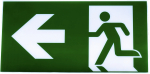 - Benutze ausgewiesene Rettungswege. Achte auf die grünen Schilder und folge ihnen.