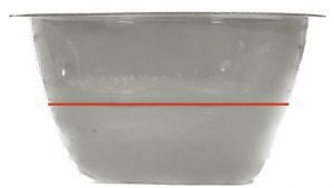 - Fülle einen durchsichtigen Becher aus Plastik bis zur Hälfte mit Wasser und wiege ihn.